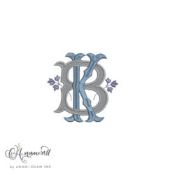 Monza Contrasting K and B, KB, BK Interlocking Embroidery Monogram Design $10.00