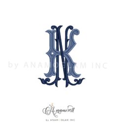 Monza K and N, KN, NK Embroidery Monogram Design $10.00