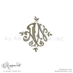 Monza Contrasting Interlocking A and N, AN or NA Embroidery Monogram Design $10.00