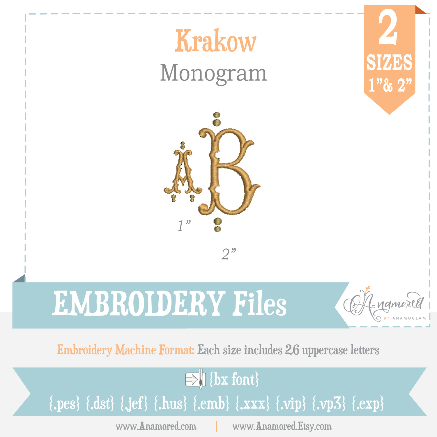 2 sizes (1 & 2 inch) Krakow Vintage Embroidery Monogram Font