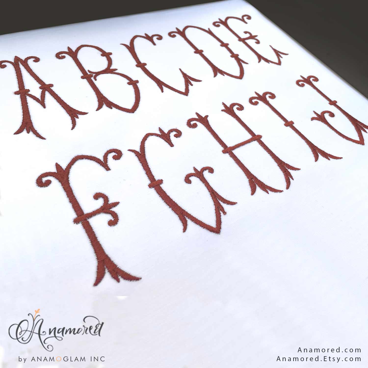 2 sizes (2″ & 3″) Maia Fishtail Embroidery Font