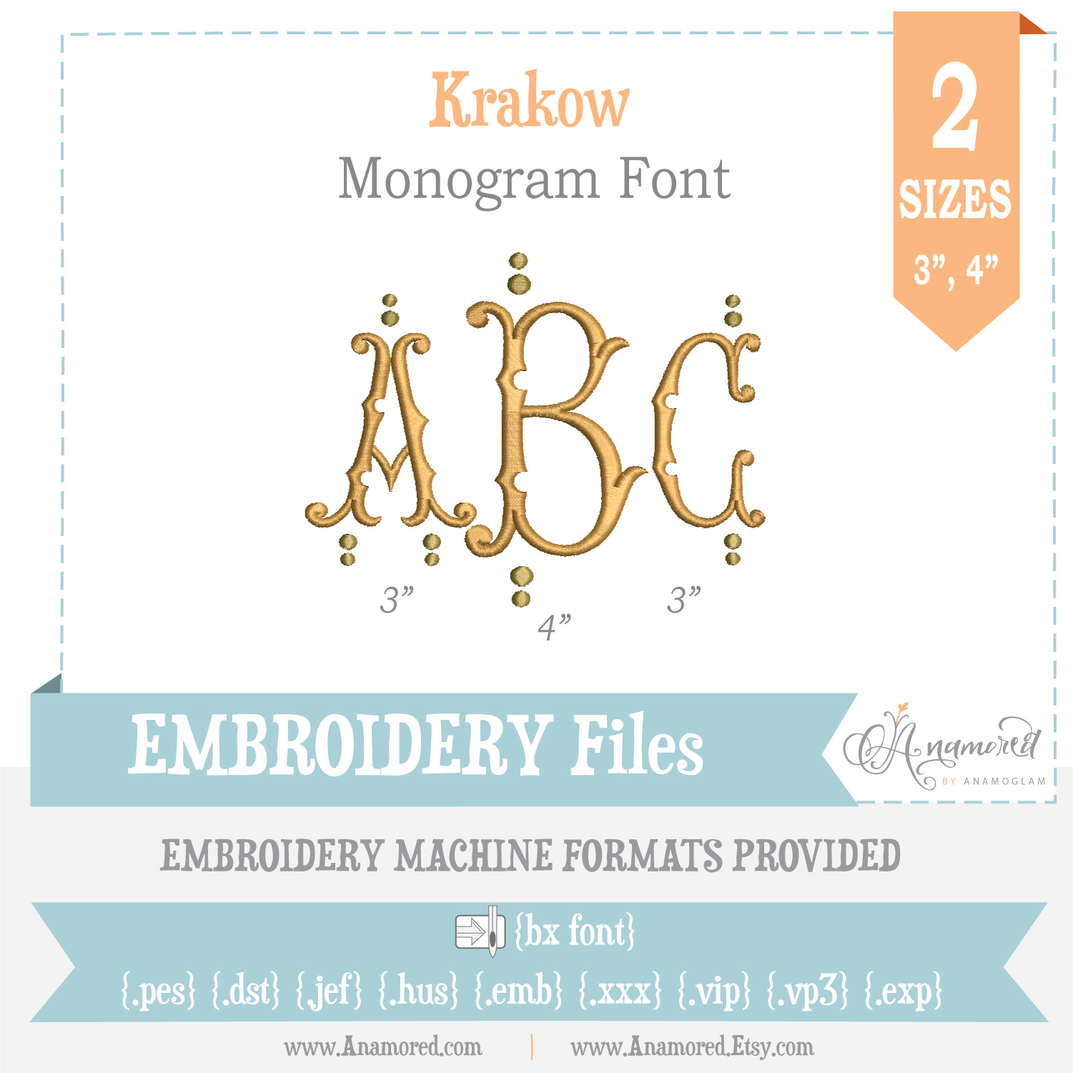 2 sizes (3 & 4 inch) Krakow Vintage Embroidery Monogram Font