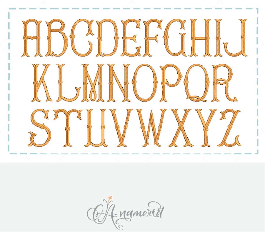 Formats Provided: {.dst} {.exp} {.hus} {.pes}, {.jef}, {.xxx}, {.emb} {.vip} {.vp3} Each letter is in it’s own file.