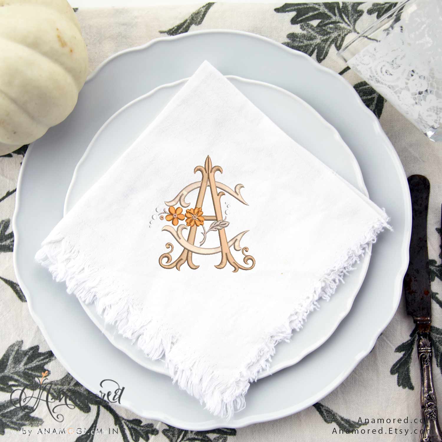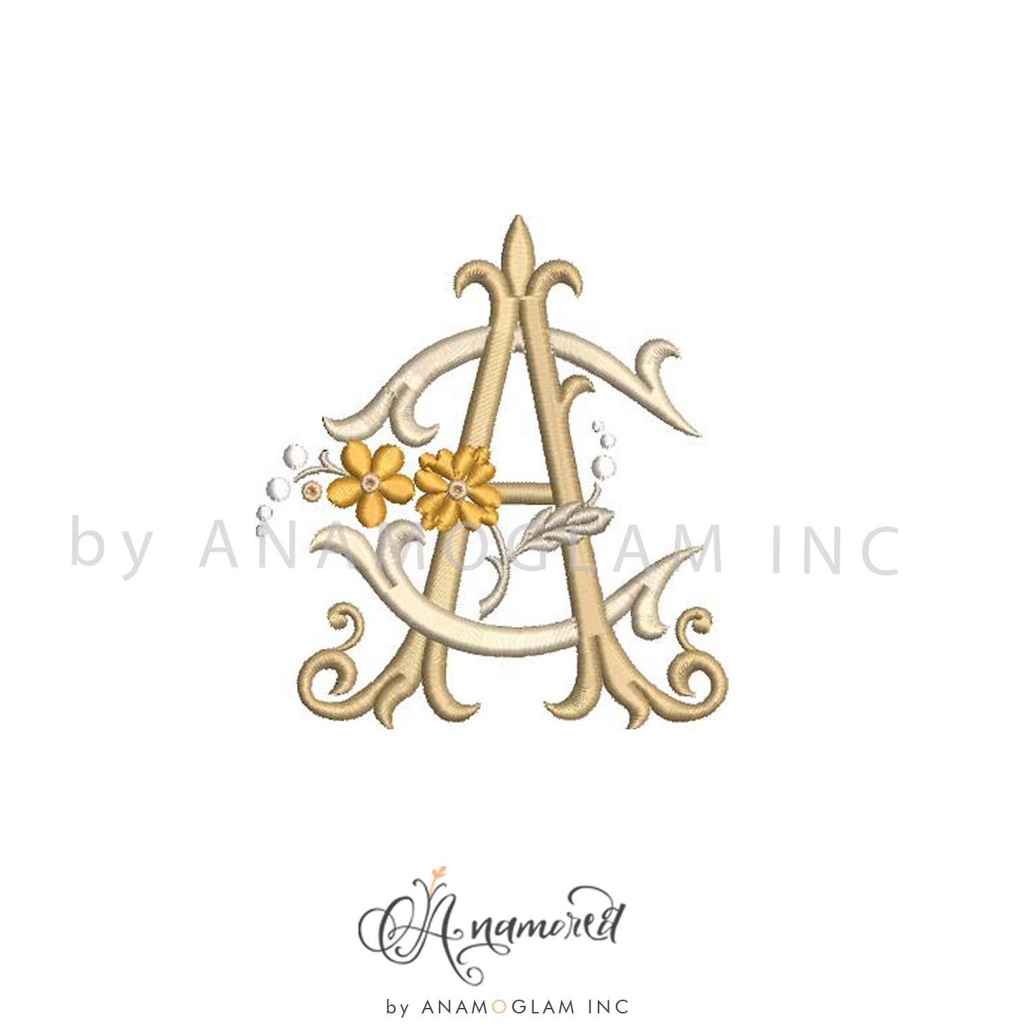 A and C Floral Vintage Embroidery Monogram Design, AC CA