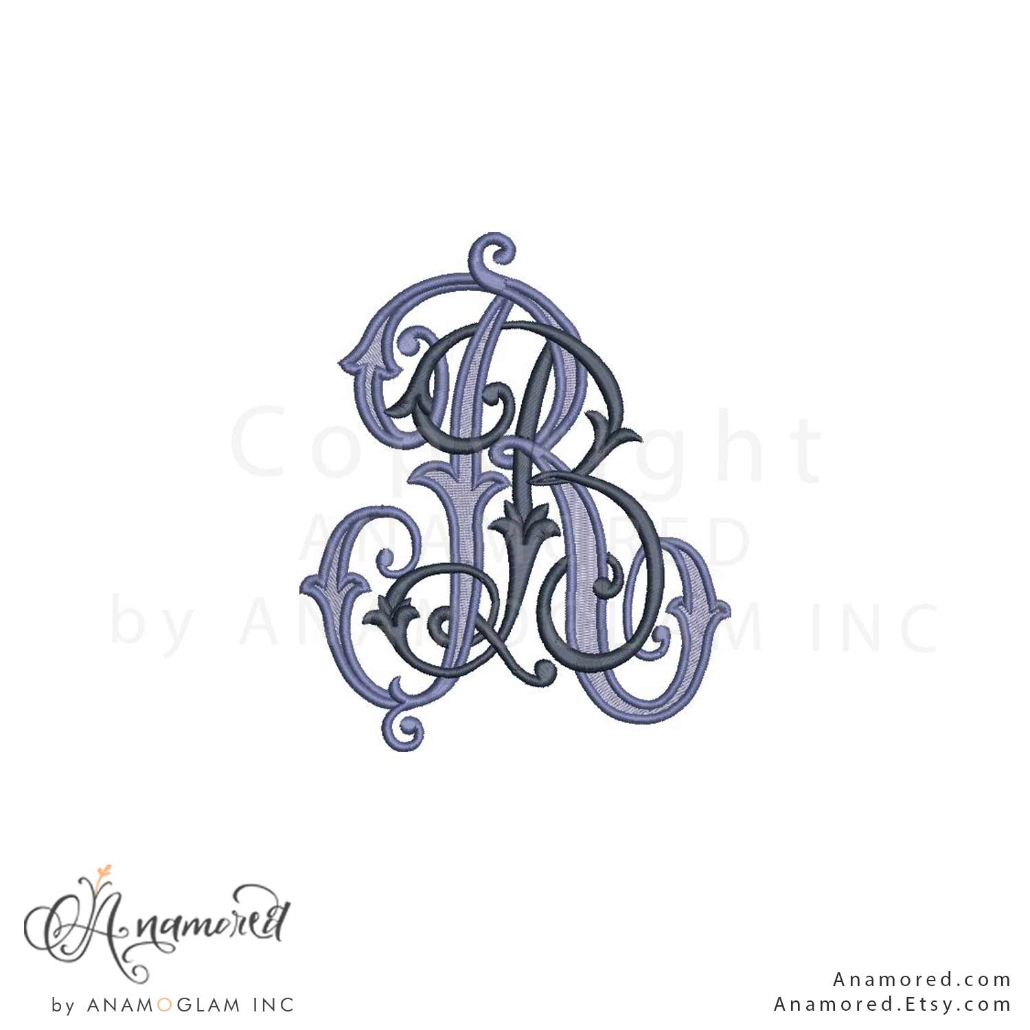 Interlocking B and R Monogram Embroidery Design Pattern