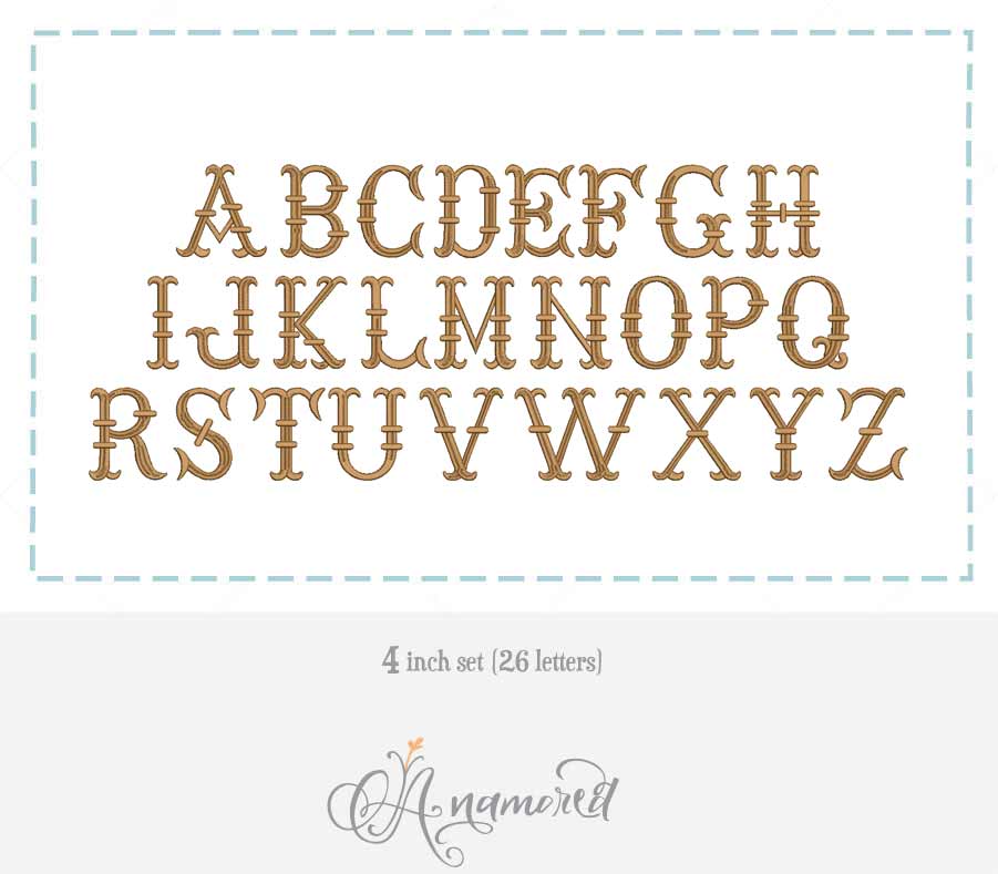Split stitch. 2 sizes, 4″ inch and 5″ inch Uppercase Letters. 26 files per size set
