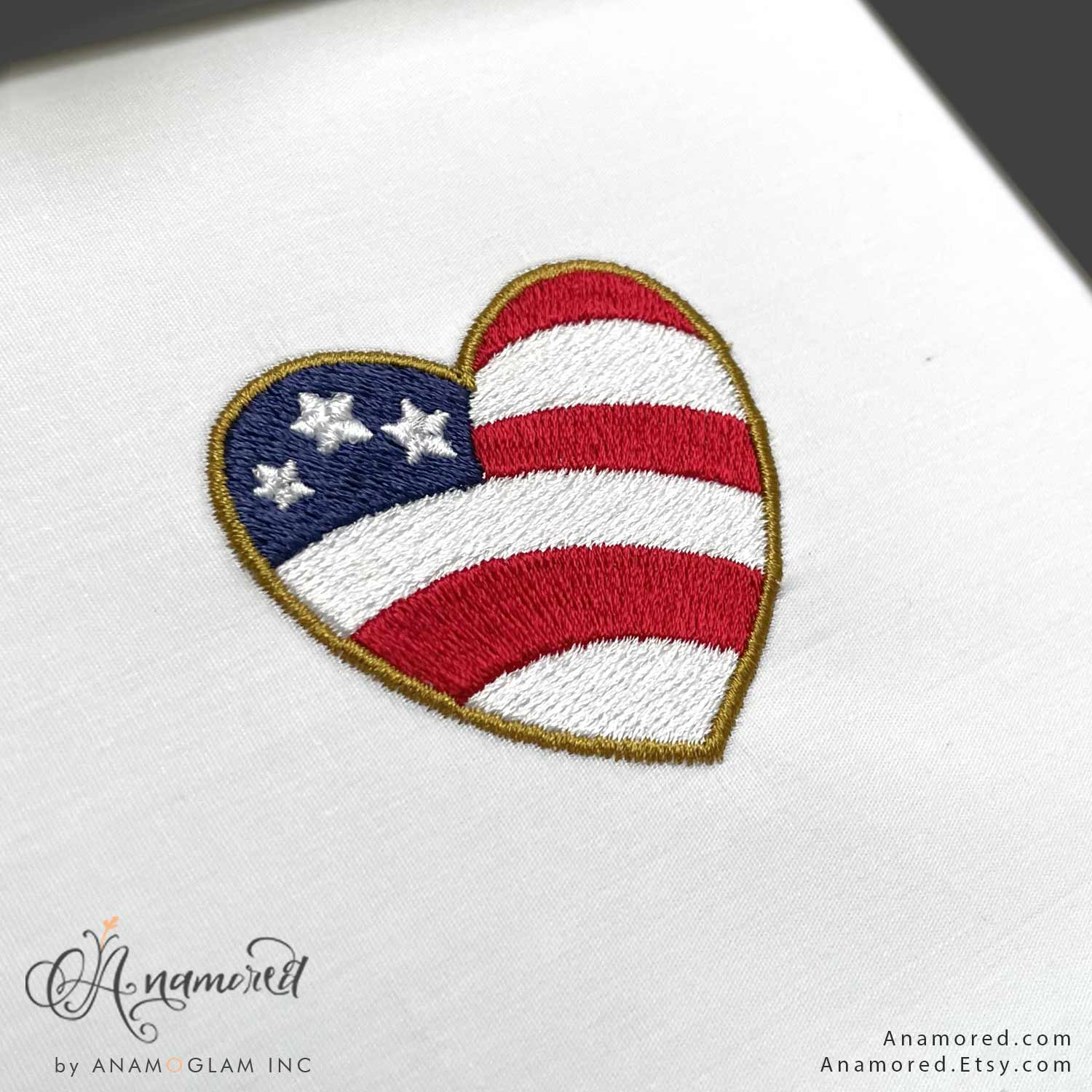 USA Flag Heart Shaped Embroidery Design, Stars and Stripes Abstract Waving Flag