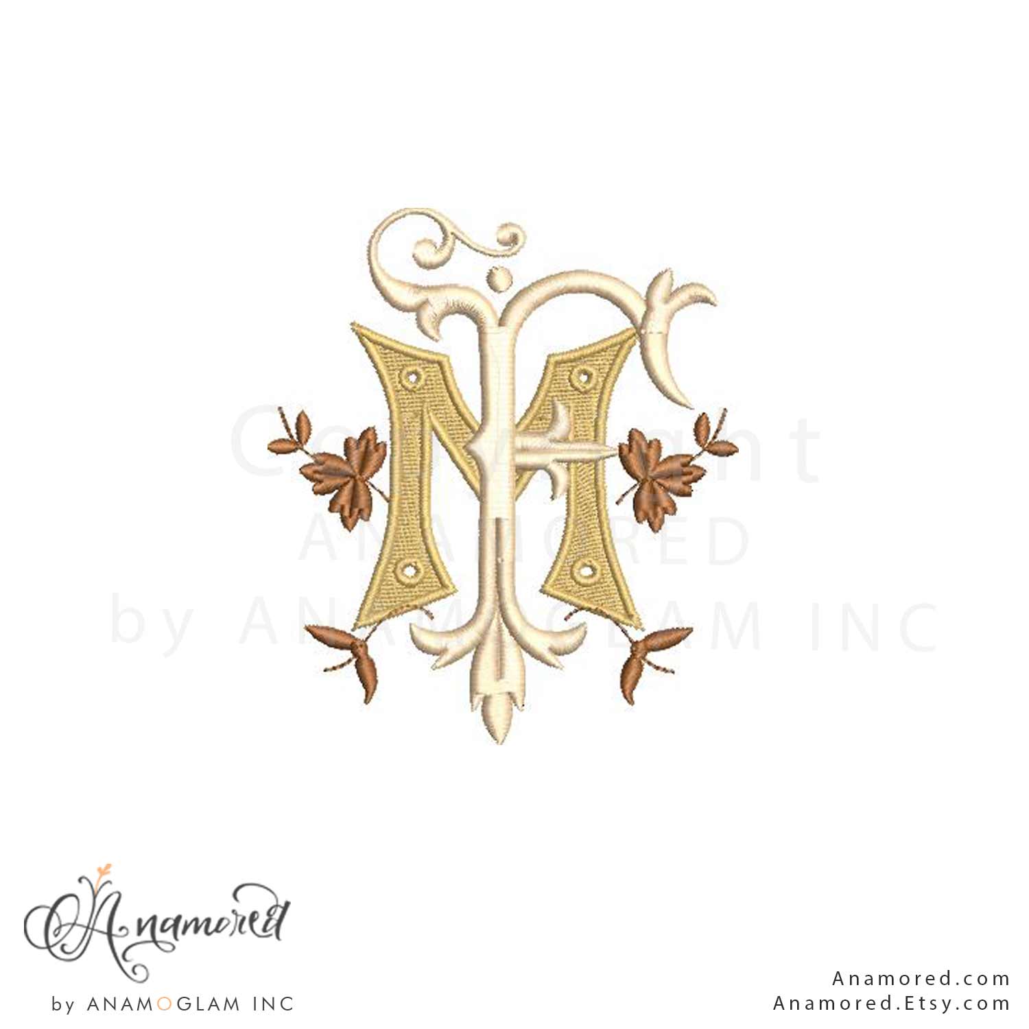 Interlocking F and M Embroidery Monogram Design, FM , MF