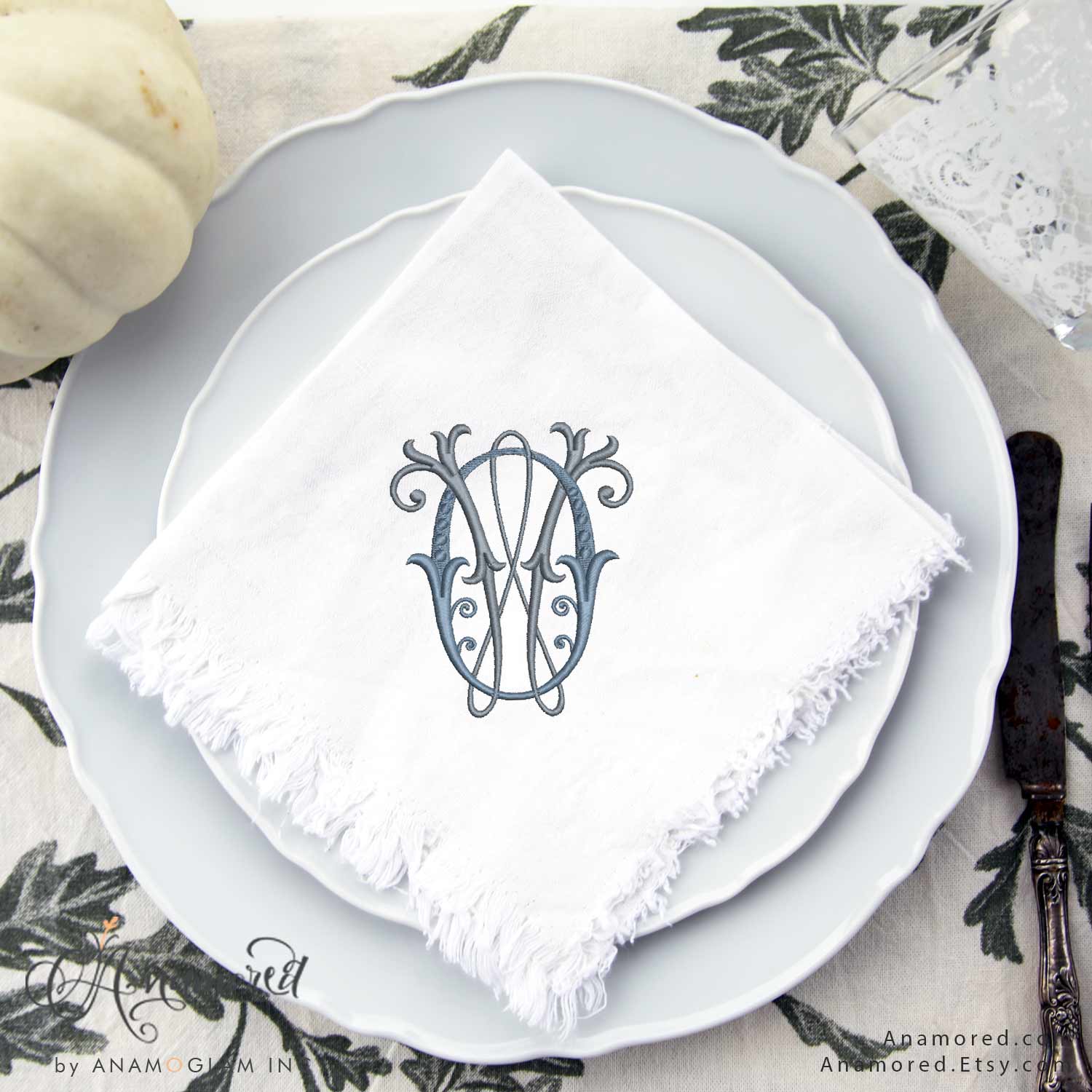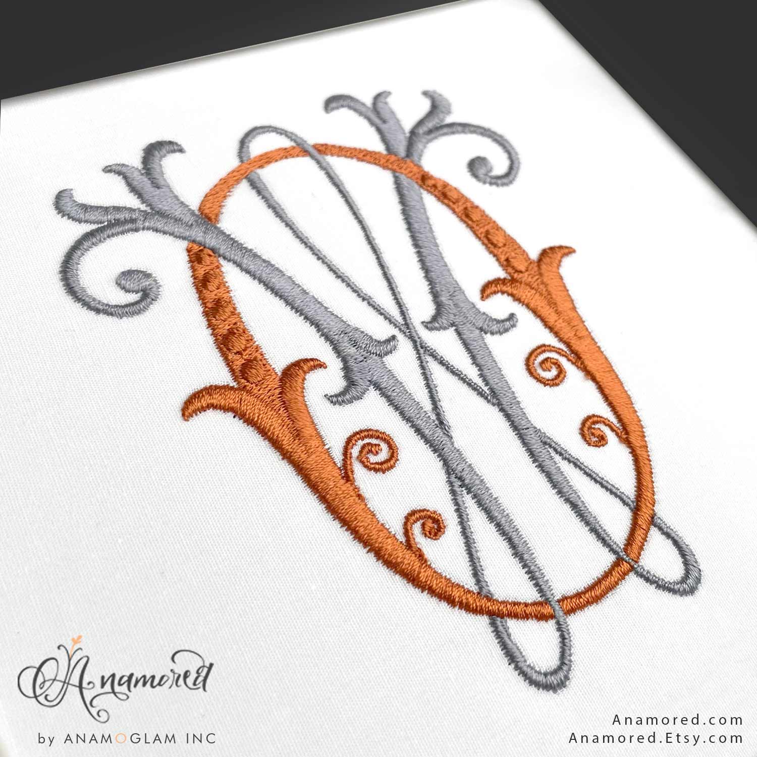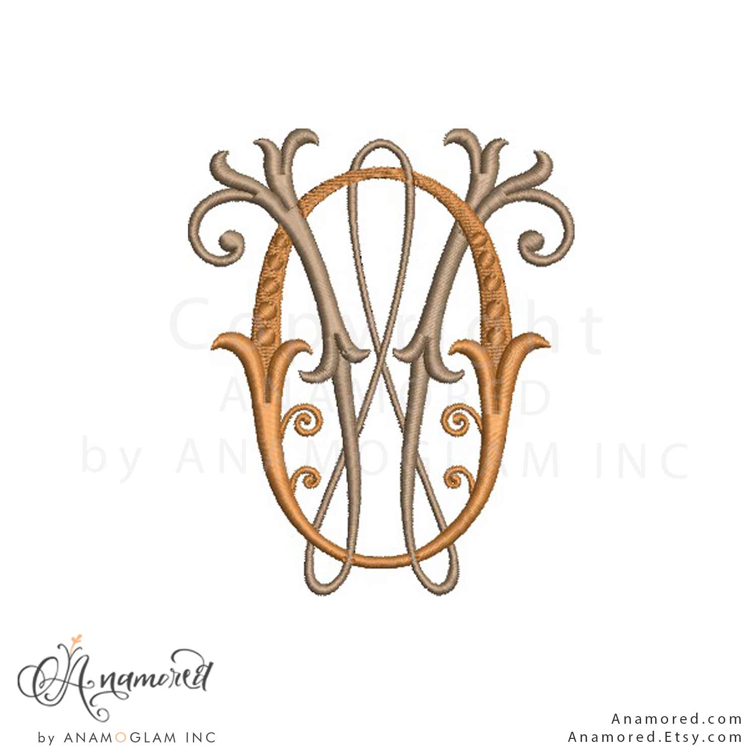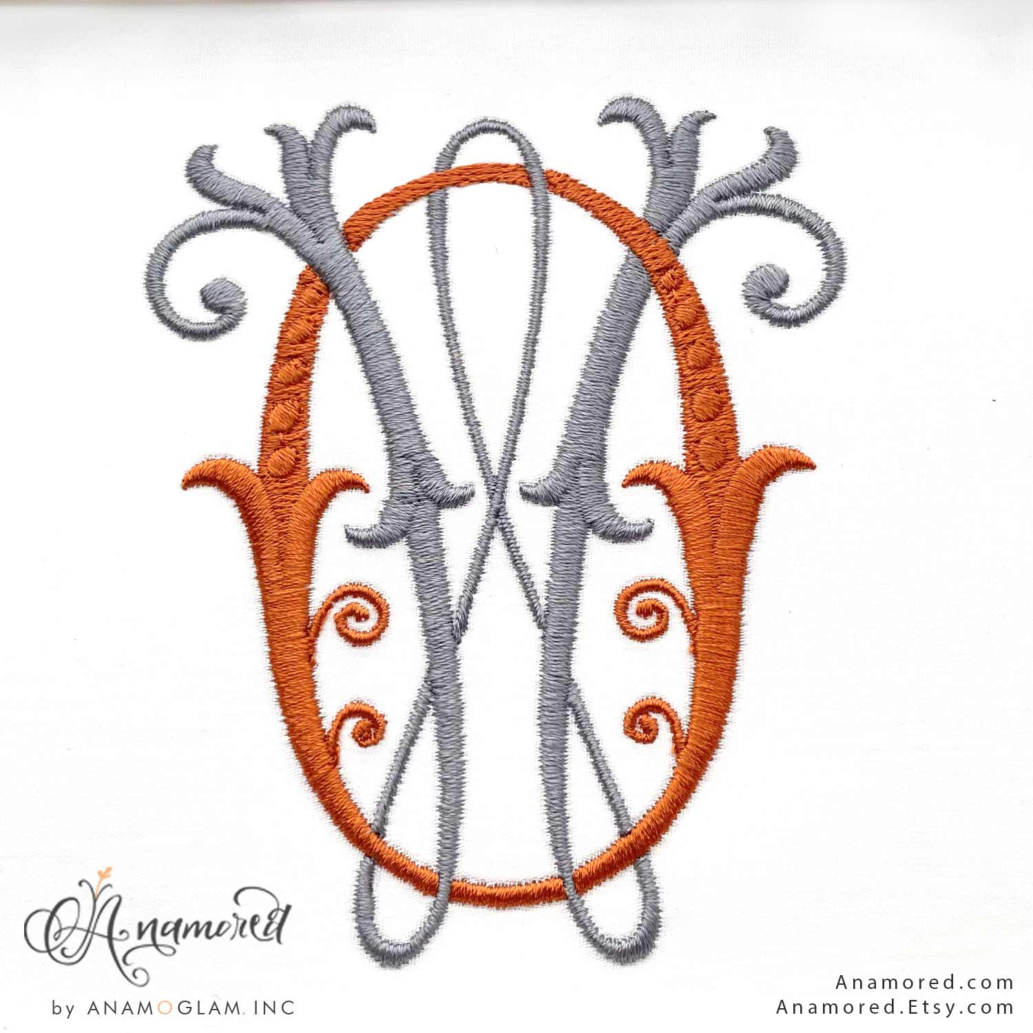 Interlocking O and W, OW WO Embroidery Monogram Design