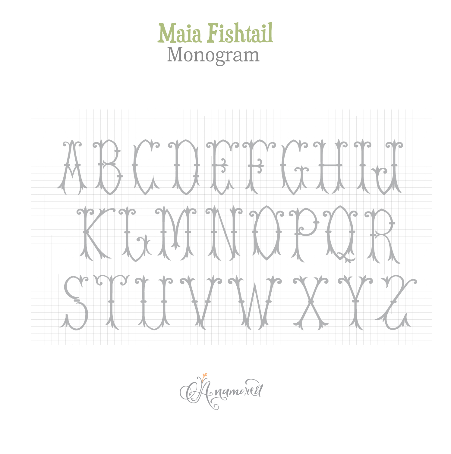 Maia Fishtail Monogram Alphabet/Font in True Type and Open Type Format